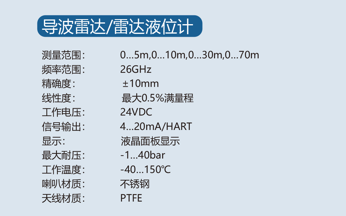 产品规格:导波雷达/雷达液位计